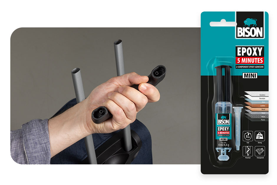 Bison Epoxy Mini 5 Minutes – dvousložkové epoxidové lepidlo 4 mlRychlé a čiré dvousložkové epoxidové lepidlo pro pevné, neviditelné spoje. Vhodné pro keramiku, sklo, dřevo, kov, kámen i plasty. Zatvrdne za 5 minut.85 Kčskladem
